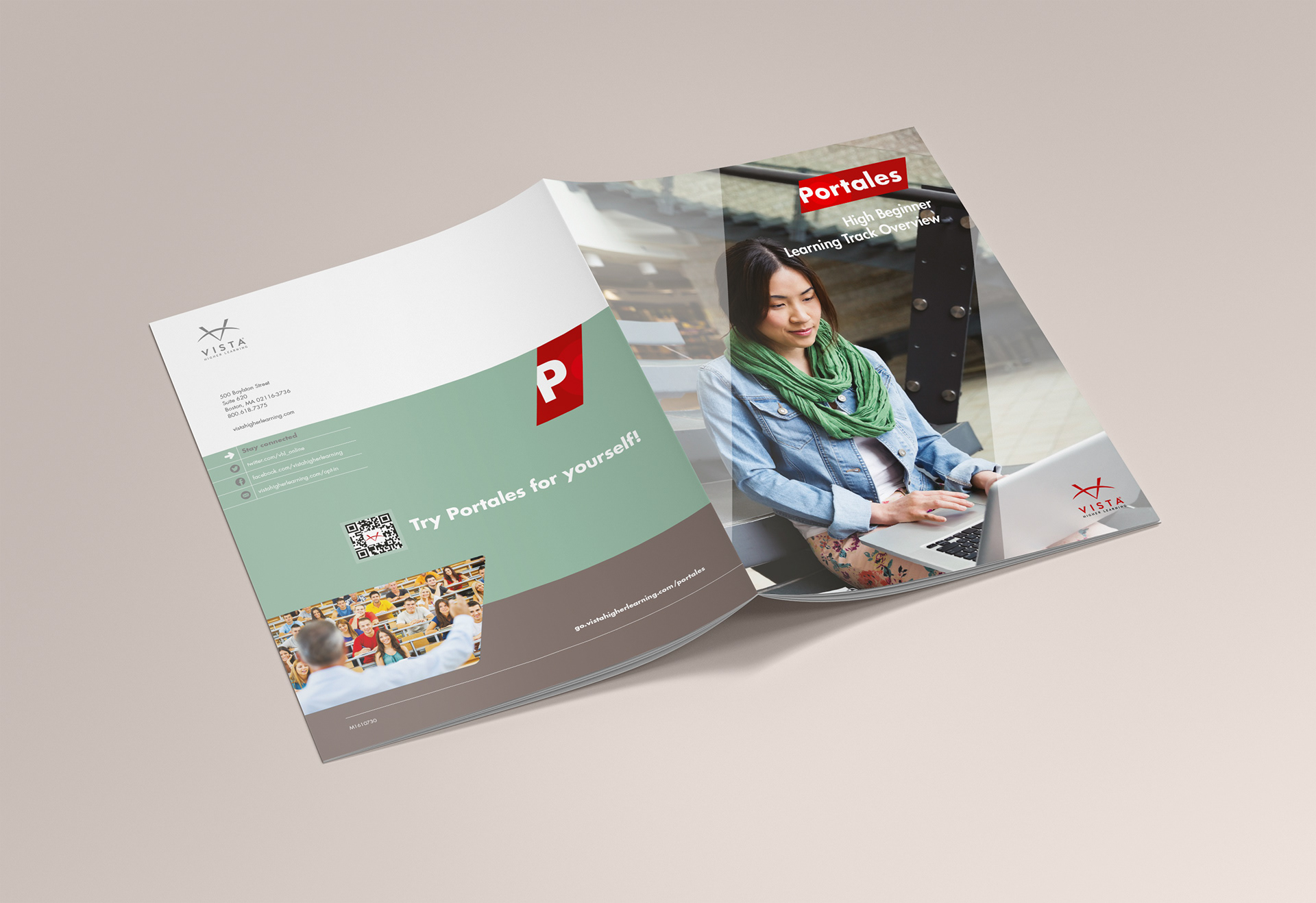 Creative direction and design: Sónia Teixeira Client: Vista Higher Learning Learning Tracks Overview brochure for Portales. The design leverages the existing Portales cover for a unified brand look.